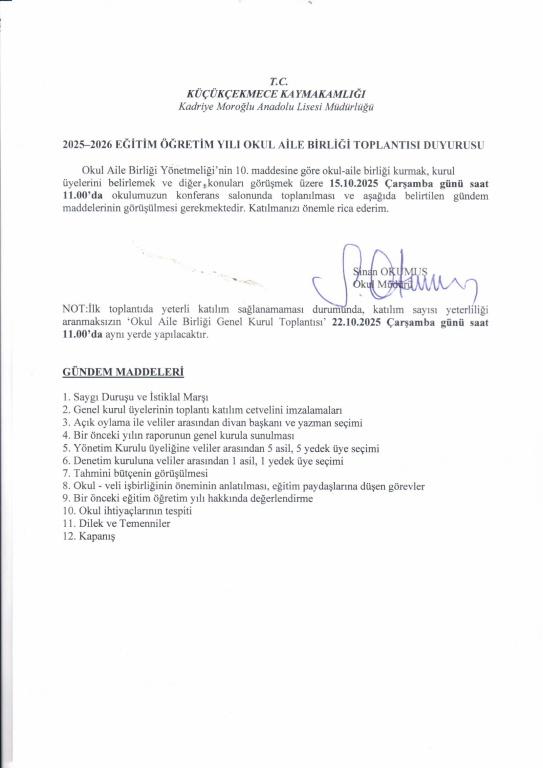 2025-2026 Eğitim-Öğretim Yılı Okul Aile Birliği Toplantısı